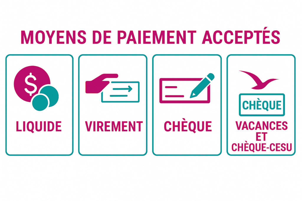 Les payements ont toujours lieu à l’inscription (lors d’une permanence). Une facture vous sera adressée par mail suite à la période d’accueil des enfants.